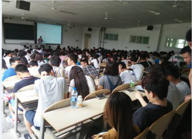 许岗教授就自己实验研究的前期准备,实验过程以及实验成果对学生进行展示和讲解。讲授期间,同学们认真听讲,现场座无虚席,许岗教授讲解的十分严谨和生动。白亚平博士用幽默风趣的语言向大家讲述了自己的大学生活,向大家展示所在科研团队的一些科研成果及仍在开展的科研项目的照片,对于自己从学生成长为一名人名教师的心路历程,和大家分享,给予大家指导作用。在老师讲述期间,同学们积极提问发言,将自己大学生活和学习中的问题提出来,和老师一同探讨,同学们获益匪浅,感触良多。