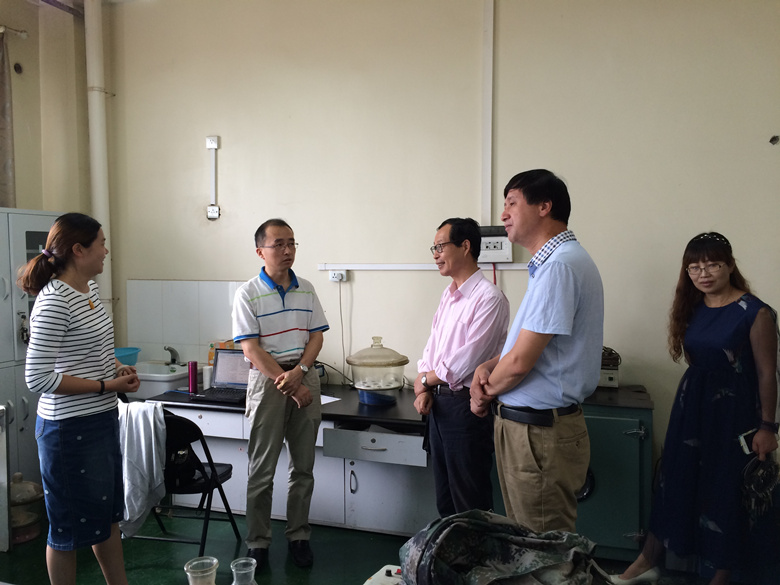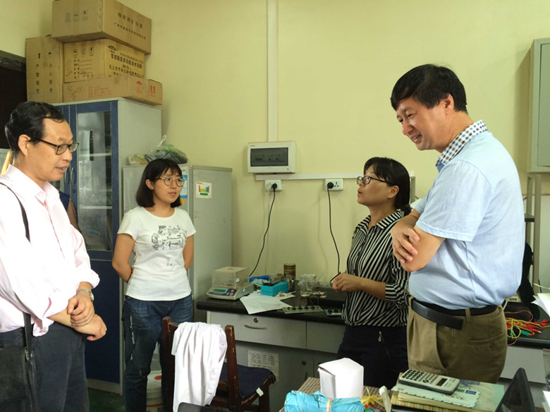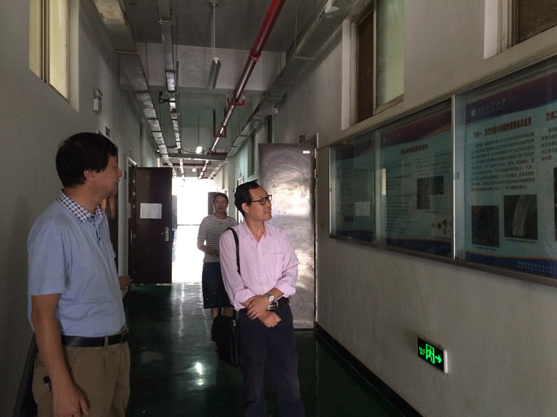 杨建光在我院党委书记路金龙的陪同下,先后走进了环工教研室、医用高分子教研室与教研室老师进行亲切交流;参观纳米光电材料实验室、复合材料实验室和腐蚀与防护实验室并且与实验员和学生进行讨论,深入了解了学院相关科学研究、技术开发、工艺和设备设计等方面的情况。在听闻我院学生在实习过程中面临的困难后,杨建光当即表示要为学院学生提供相关的实习场地和机会。参观结束后我校副校长刘建勋及我院党政领导同杨建光进行了座谈交流。