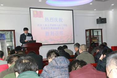 在工3-404会议室召开基层党委换届选举工作,换届选举大会由现任院党委副书记张治宏同志主持,校党委组织部副处级组织员姜冰清、正科级组织员纪敏出席了此次会议,会议应到党员112名,实到94名。