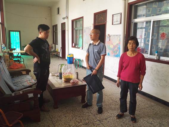 在黄窑村村委会会议室,组织部、纪委监察处、审计处及我院扶贫工作人员与我校驻村代表曾军锋在就精准扶贫工作进行了经验交流。然后在村委会郭主任安排的工作人员的陪同下走访了惠窑组田铁娃、赵中祥和张窑组张立虎三家扶贫对象,了解农作物生长情况。与帮扶户成员进行了亲切交谈,并为每户送去了一吊肉和水果,同时也给我校驻村干部送去了水果表示慰问。