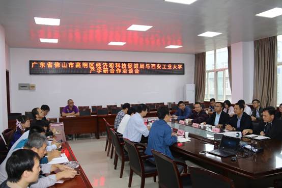 9月19日上午,广东省佛山市高明区经济与科技促进局代表团一行15人莅临我校进行产学研洽谈。洽谈会在av女优