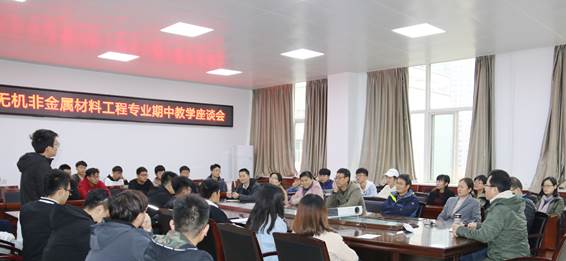 在工3-410召开无机非金属系师生期中教学座谈会,会议由无机非金属系主任许岗主持,无机非金属系全体教师出席此次会议,辅导员陈远林、相关专业24名学生代表参加了此次座谈会。