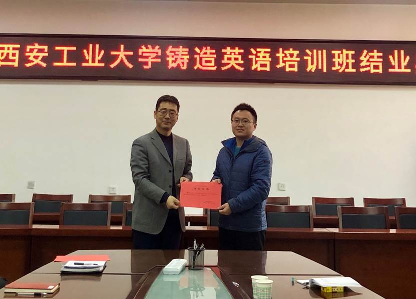 铸造英语培训班结业典礼在我院会议室举行,副校长任海鹏出席此次典礼并发表讲话。兵研院副院长董晟全、av女优