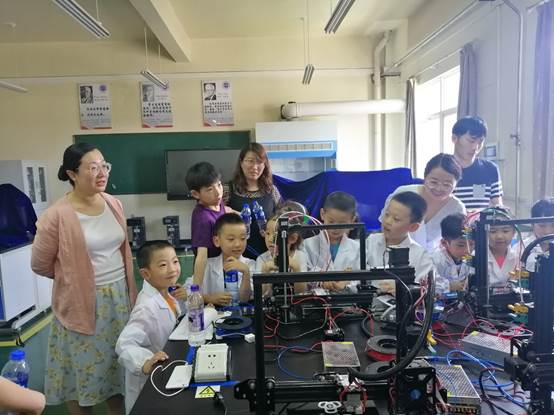 座谈会后,大家参观了学院3D打印实验室。马爱洁老师耐心的向孩子们讲解了3D打印的发展、原理及应用实践。实验室老师现场启动打印机,演示3D打印的操作及运行,并分发事先打印好的模型让孩子们零距离接触和感受3D打印,体验现代科技的神奇奥秘和魅力。