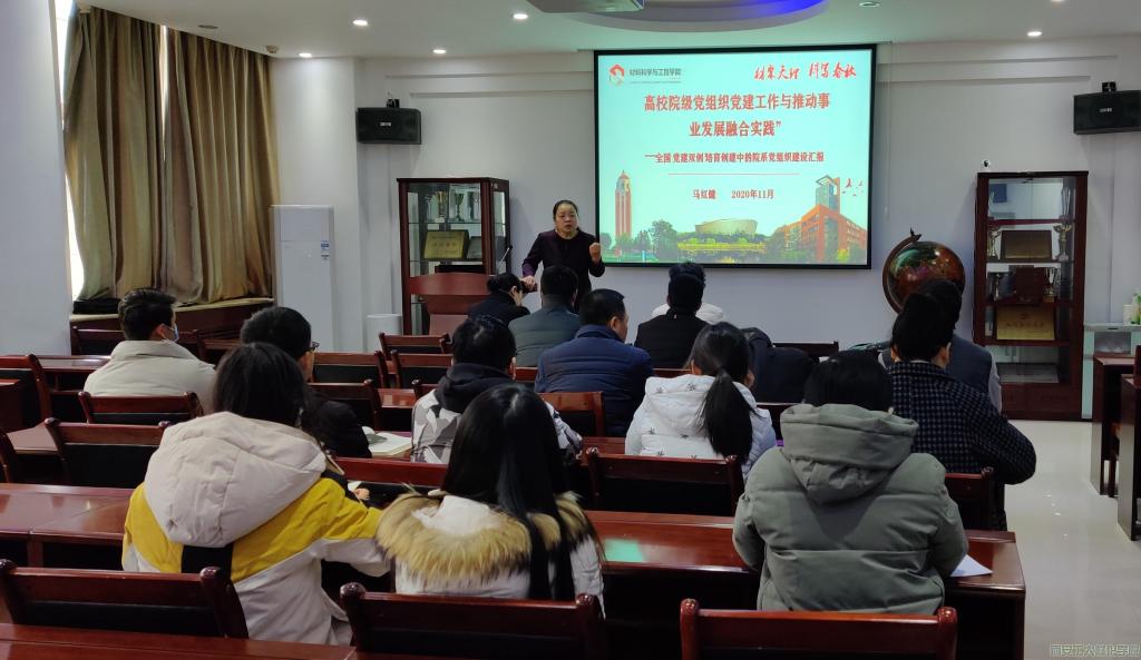 会上,马红健教授首先作了题为《高校院级党组织党建工作与推动事业发展融合实践——全国“党建双创”培育创建中的院系党组织建设汇报》的报告。马教授围绕全国党建工作标杆院系的建设情况,从党建项目的申报过程、学院的工作基础以及标杆院系前期建设情况三方面进行了分享。要高质量的完成“党建双创项目”,做实、总结、提升、表达,缺一不可。她强调,要做好高校党建工作,首先最重要的是把握政治建设,牢牢抓住意识形态主动权。其次,高校党建,特别是基层党组织的学习和活动,要紧紧围绕立德树人、科学研究等做实事见效果。最后,高校党建必须与事业发展相融合,取得事业发展的成果。