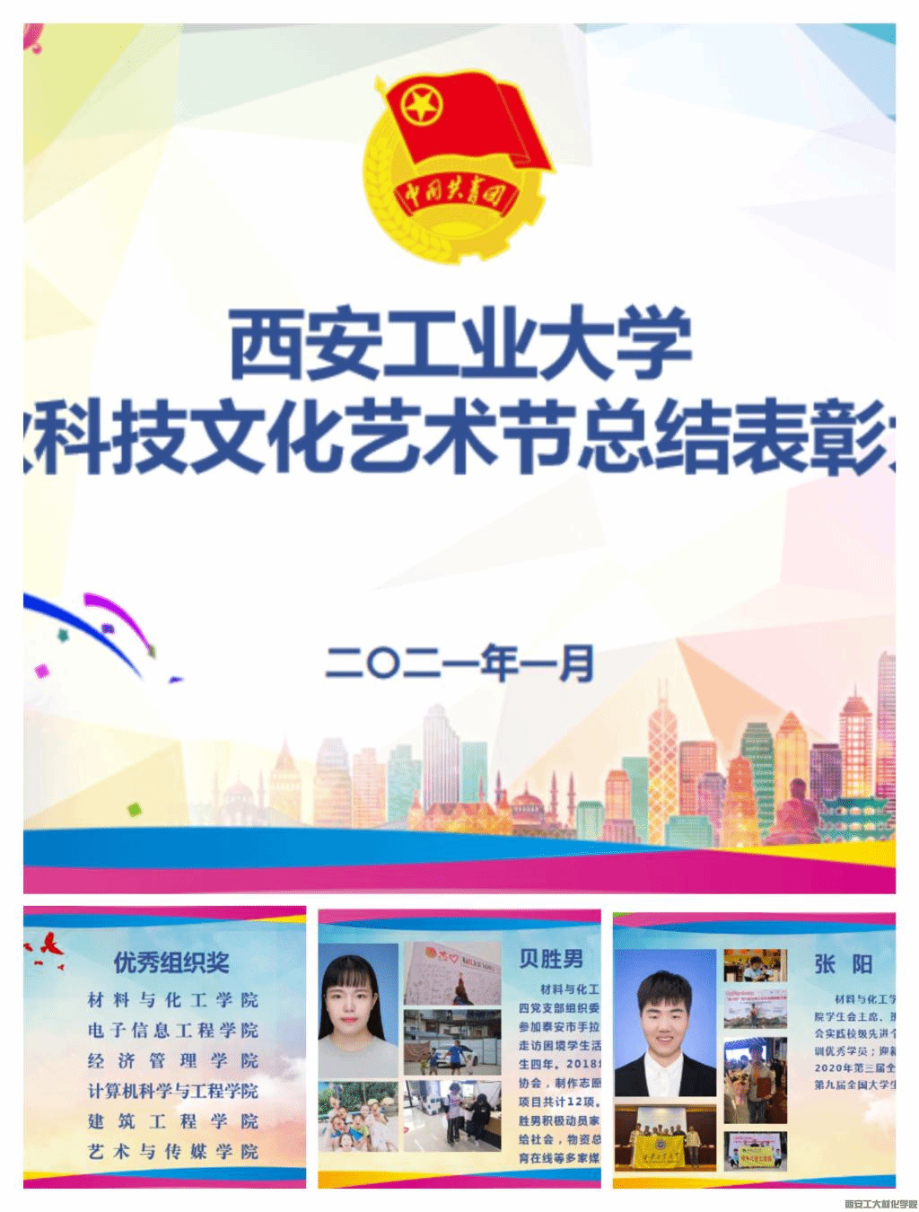 金秋科技文化艺术节总结表彰大会在图书馆报告厅线上隆重举办,校党委副书记王军周以及党委宣传部、党委学生工作部主要负责人,校团委工作人员、各学院团委书记、各学院获奖学生代表、校院两级团委主要学生干部以及学生家长共计200余人参加了大会。