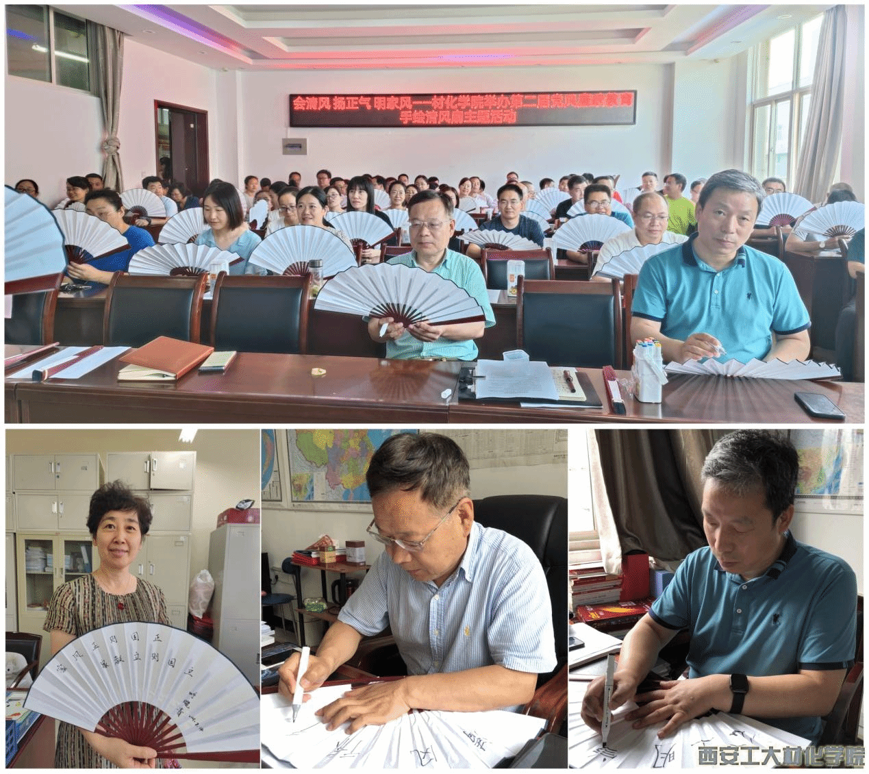 最后,围绕“廉洁”“家风”主题,广大教工绘廉洁、沐清风,挥毫泼墨,行云流水,一幅幅笔墨丹青跃然纸上。夏日酷暑,现场随处可见写着“初心使命”“廉洁”“梅花”“山水”等字画的折扇,本次主题活动为广大教工带来了一场心灵上润物细无声的洗礼,使大家廉洁自律的种子在心里不断生长壮大,根深蒂固。14 -15日部分教工与家人共同完成纸扇绘制,将优良家风家训书绘纸上,不仅戒子亦能勉励自己,将优良传统代代相传。