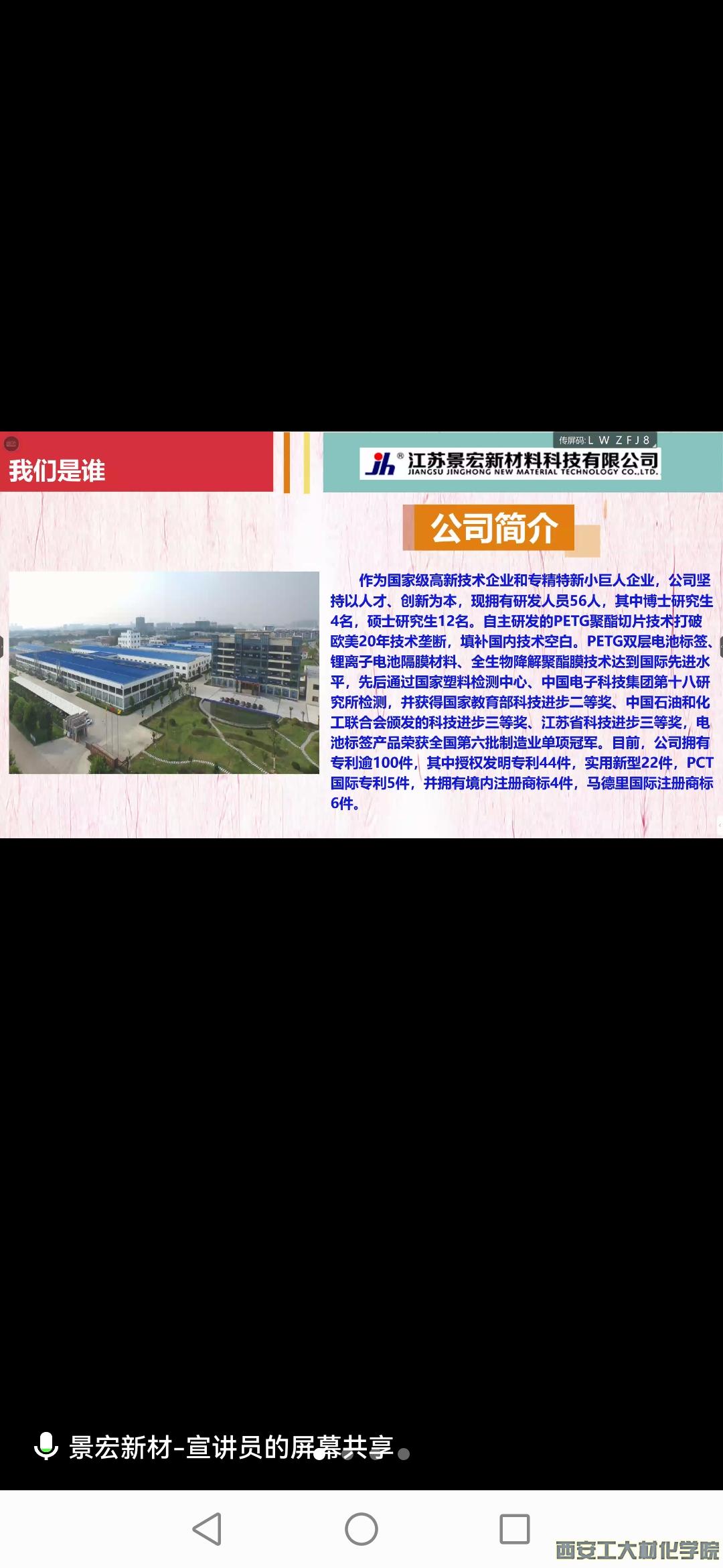 江苏景宏新材料科技有限公司作为全球最大的碱性电池标签供应商,该公司以先进的生产技术,经营理念以及杰出的人才培养方案吸引了众多同学积极参与。江苏景宏新材料有限公司人事部门为同学们介绍了公司详细情况以及规划、发展以及人才引进培养措施等。同时学院副书记陈卫星教授与单位关于产学研、实习其他、人才培养等方面积极沟通。最后,江苏景宏新材料有限公司并对同学们提出的问题耐心做出解释和回答,毕业班辅导员与单位沟通会及时把学生简历推荐给单位,更好提高毕业生就业工作的质效。