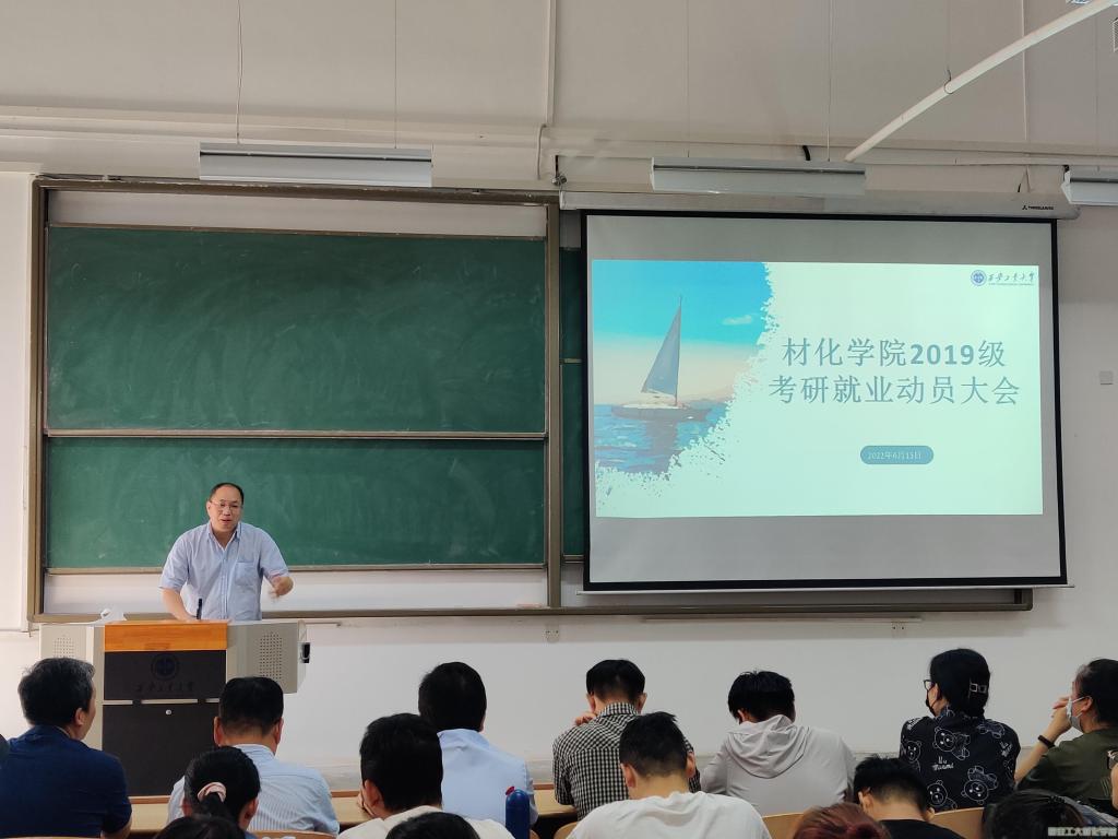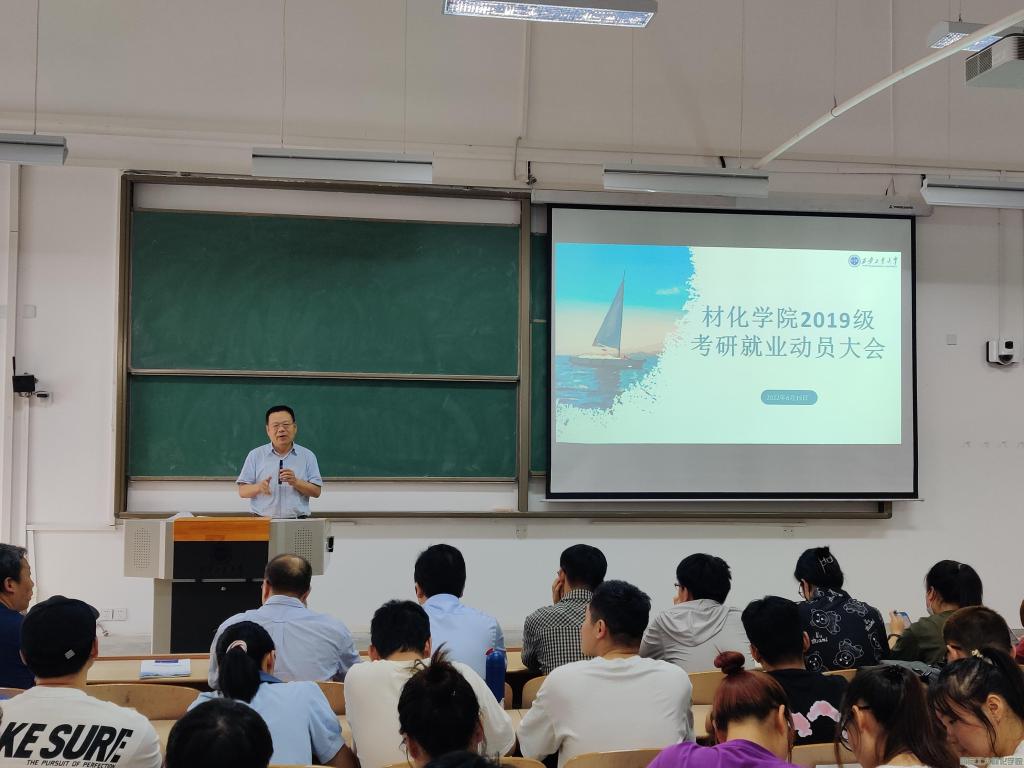 为促进高质量就业,进一步鼓励我院学生坚定考研目标,增强考研信心,做好考研选择与准备,6月15日上午8时,材化学院2019级本科生考研就业动员大会在教3-217举行。学院院长惠增哲、副书记陈卫星、副院长杨忠和金洗郎以及2019级全体学生共同参加会议,大会由2019级学生辅导员乔娜主持。