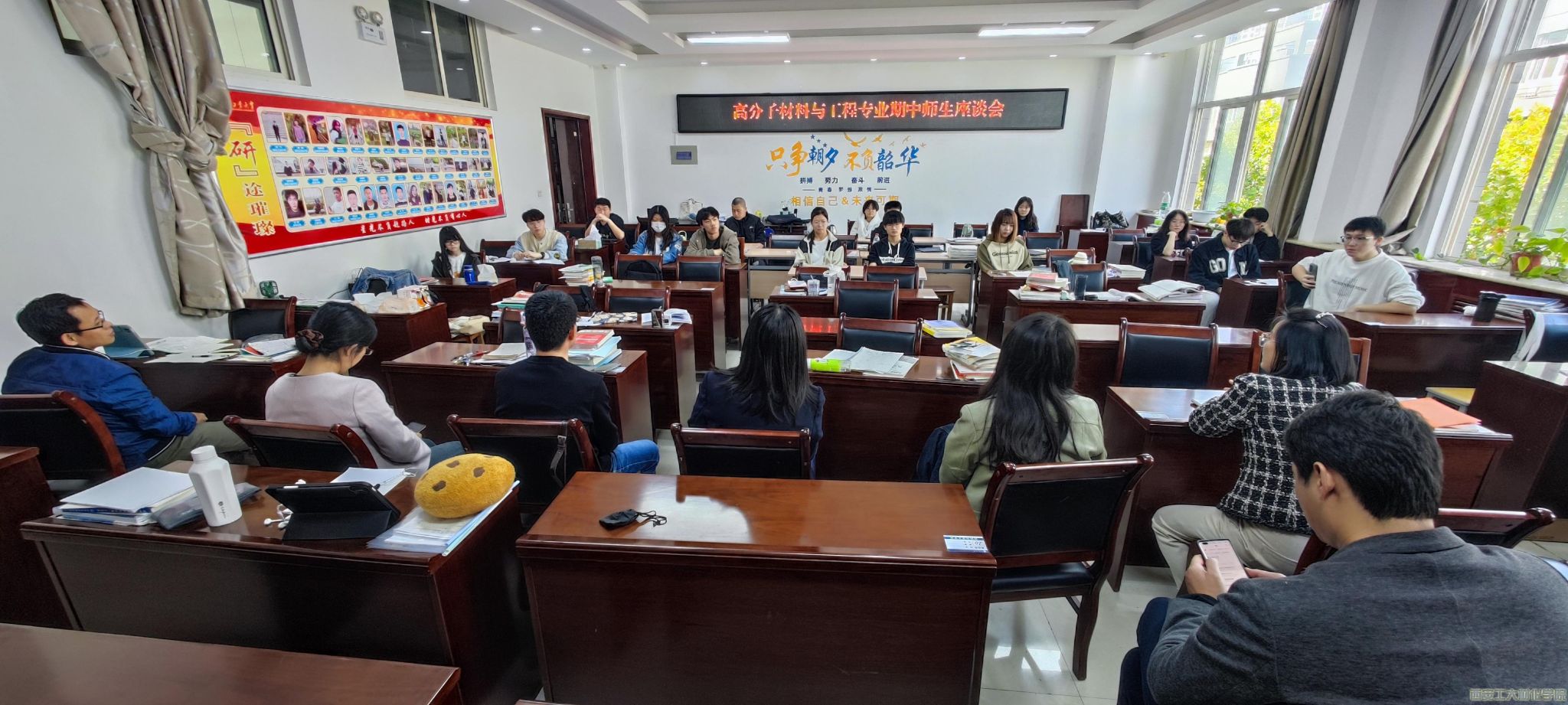 高分子专业教师侯永刚、罗春燕等7名教师及不同年级专业学生30余人参加会议。会议由2020级辅导员段强主持。
