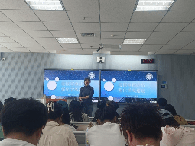 3月29日,2022级材料化学专业在工4-204召开“迎审核评估,促学风建设”师生交流会。会议由2022级辅导员张瑞红主持,材料化学专业教研室主任扈琳、副主任文瑞龙、教师代表高玲、士丽敏,材料化学2022级全体学生参加。大会开展2022级学风建设大讨论,专业老师为同学们讲解专业特色与研究方向,引导学生端正学习态度,回归学生本位,成为优良学风的倡导者、文明校园的践行者、迎评工作的贡献者。本次大会使同学们对审核评估工作有了更深入的了解,提高了同学们的迎评意识,扎实推进了材料化学专业的学风建设。